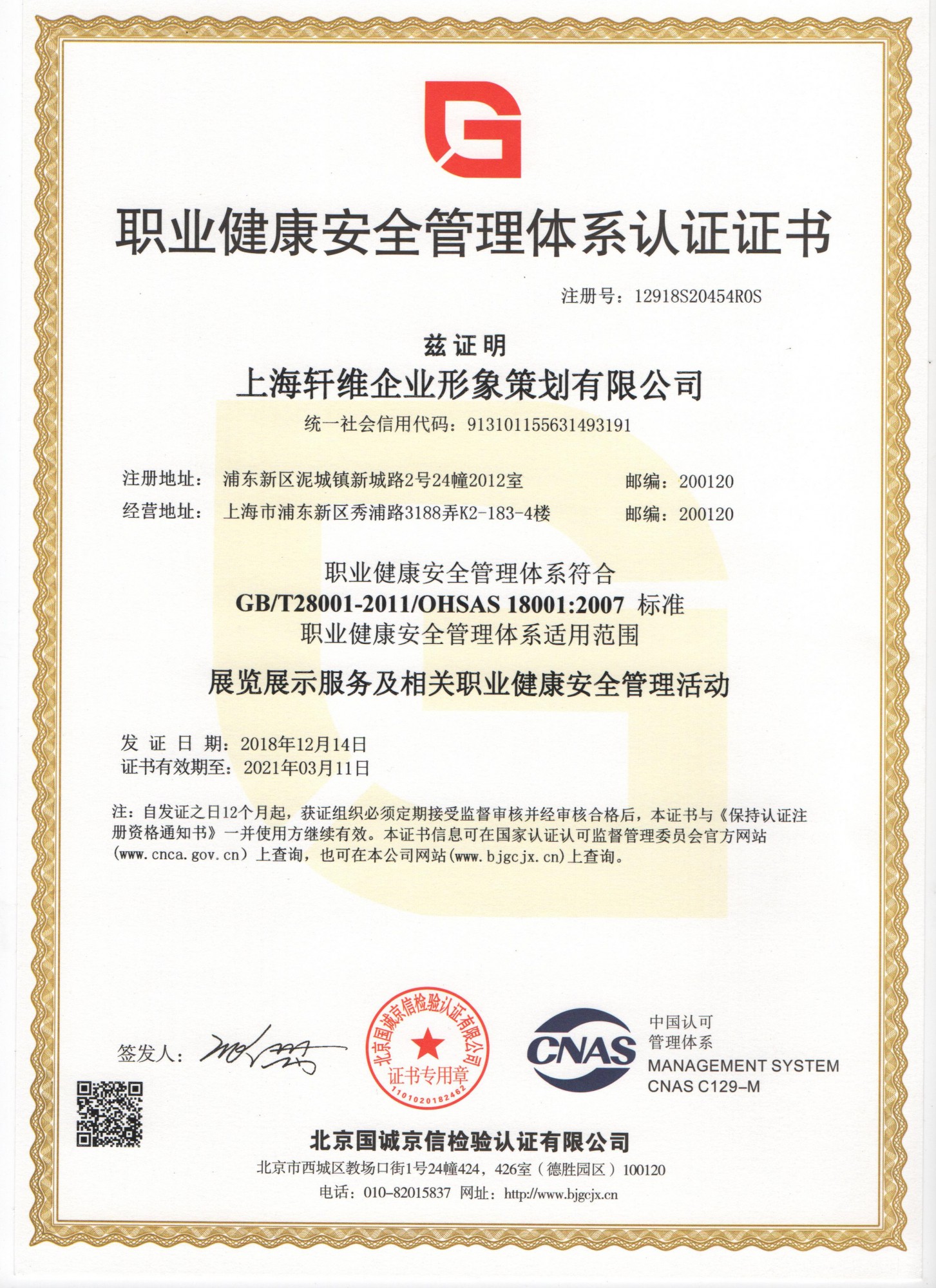 職員健康安全管理體系證書