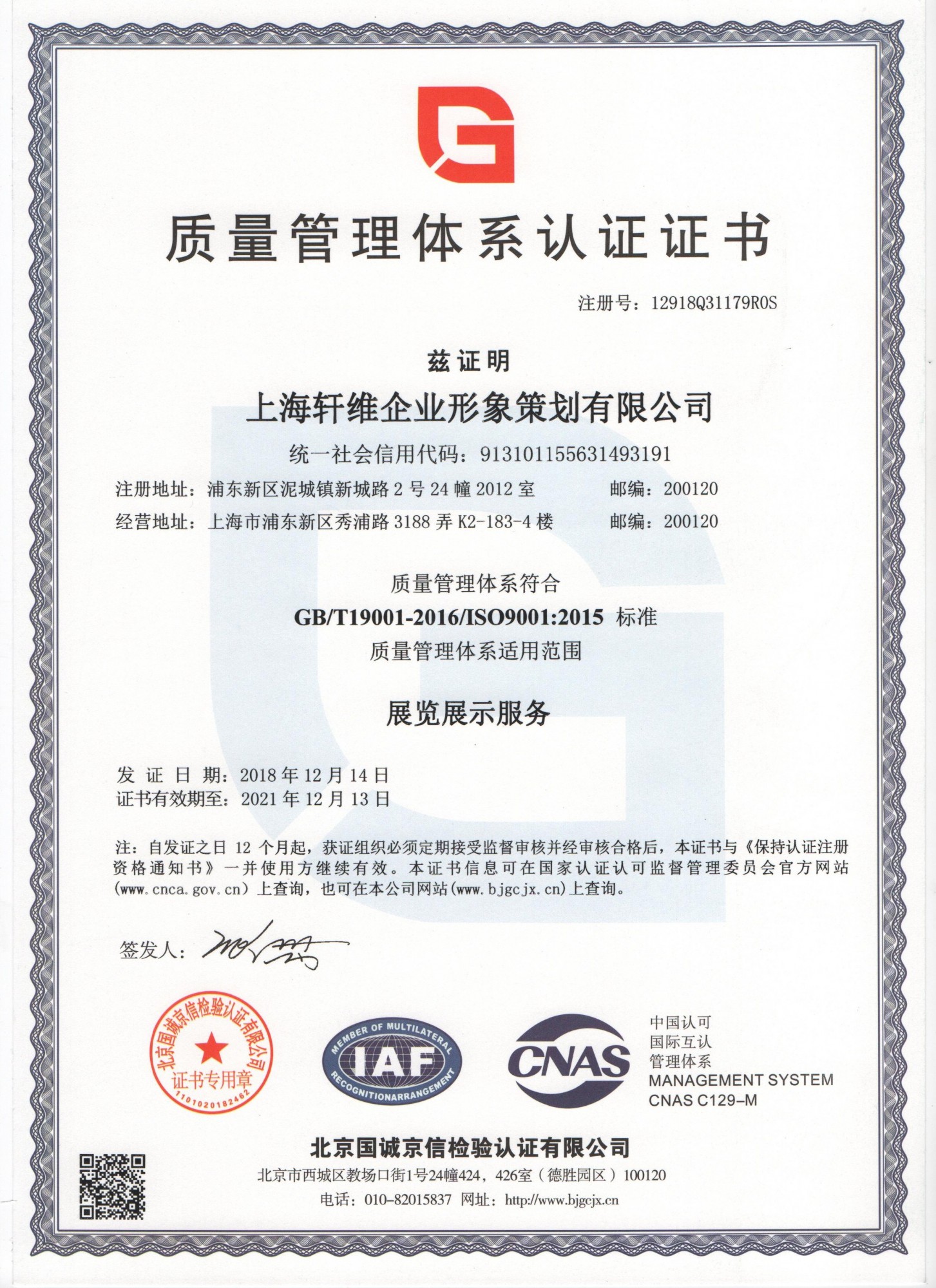 質量管理體系證書