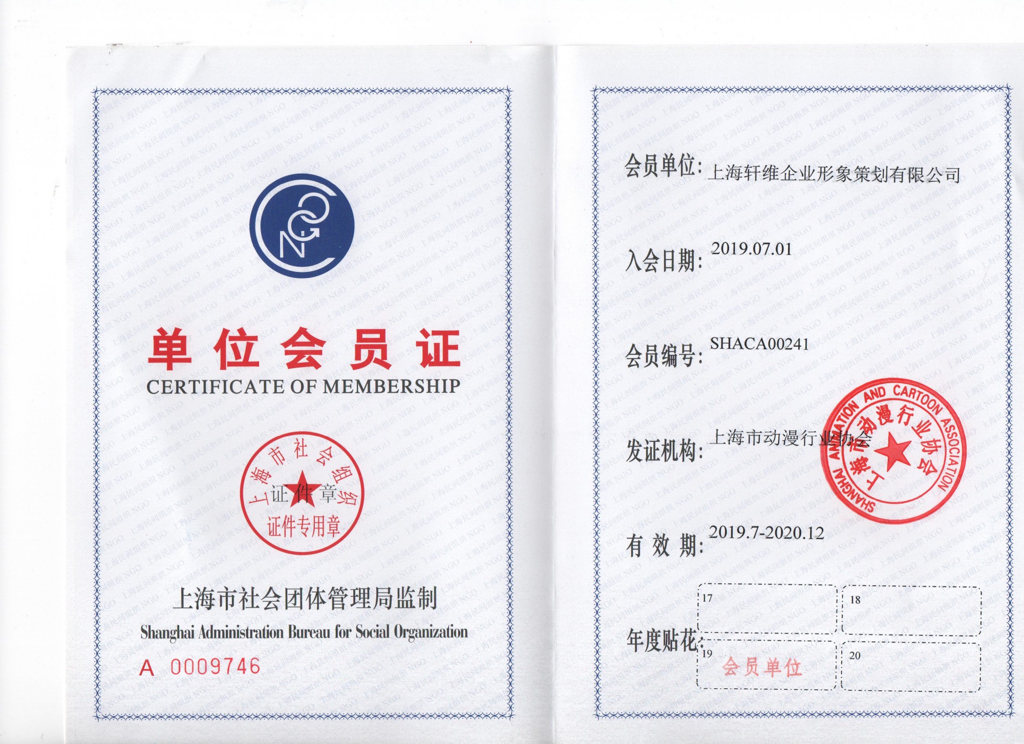 上海會展協會會員證書